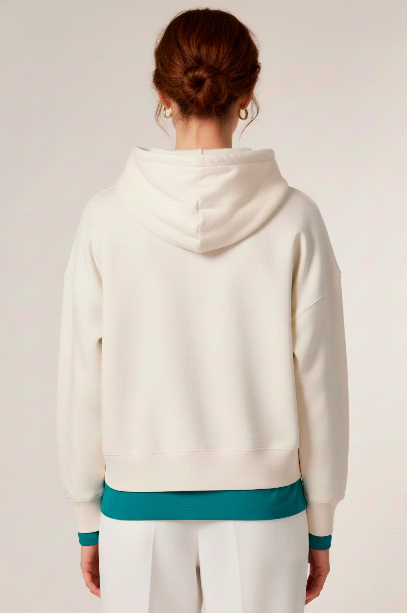 Confeccionada en 100 % algodón – Organic Carded, de felpa no perchada con un peso premium de 400 g/m², diseñada para ofrecer un acabado Dry Handfeel que aporta estructura y una sensación auténtica al tacto. Estampada con serigrafía de alta calidad y equipada con un bolsillo canguro en la parte delantera, esta hoodie combina comodidad, estética contemporánea y carácter sostenible en cada detalle.