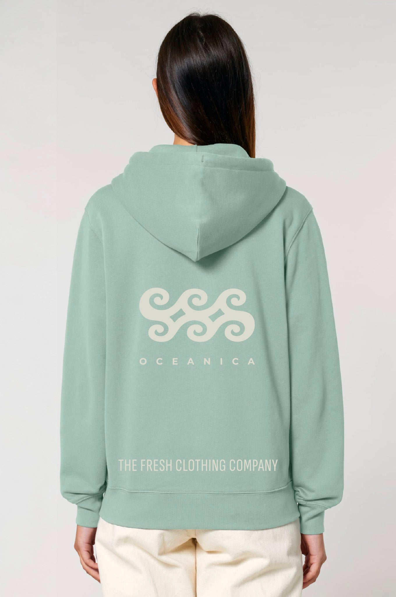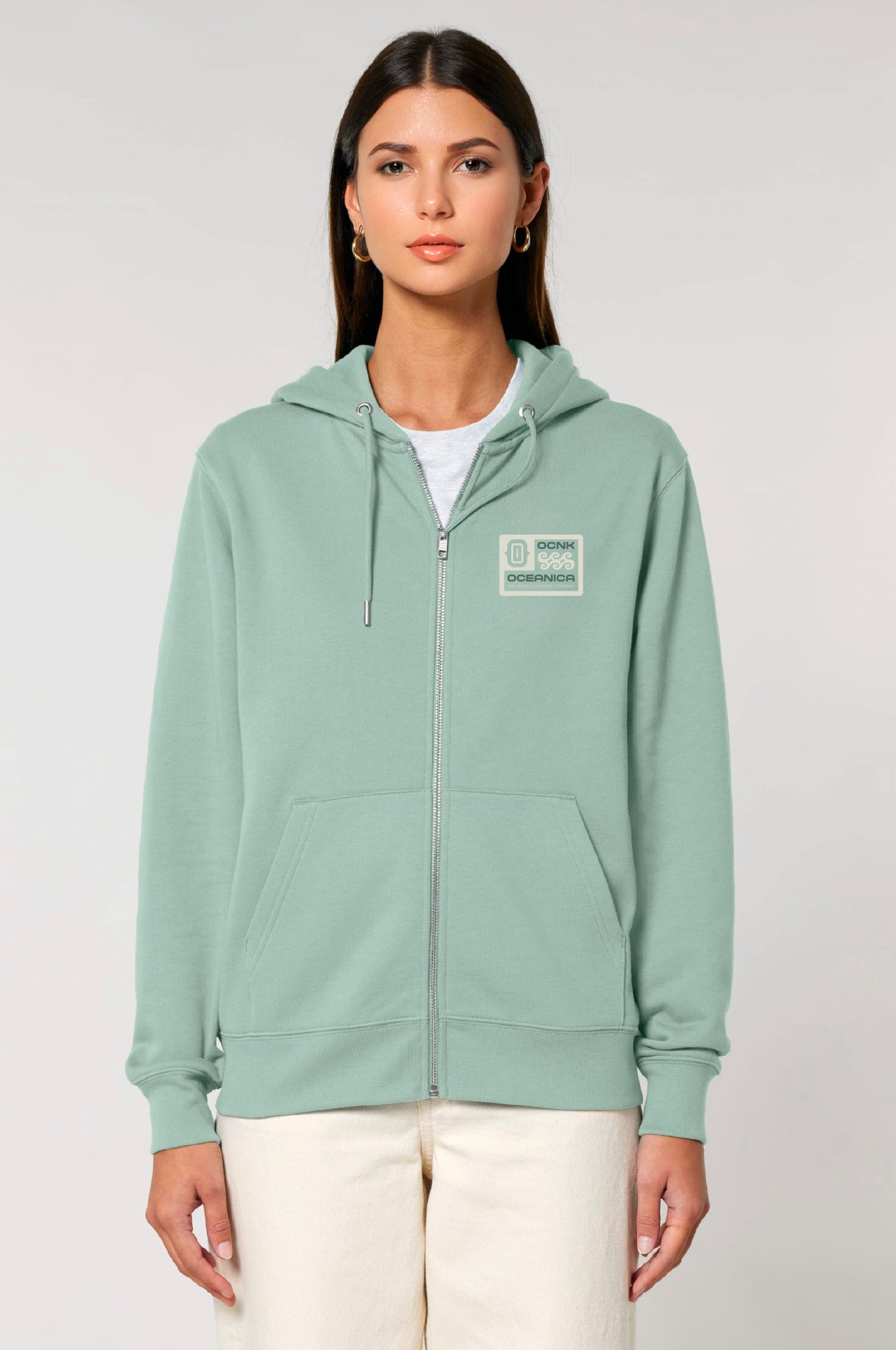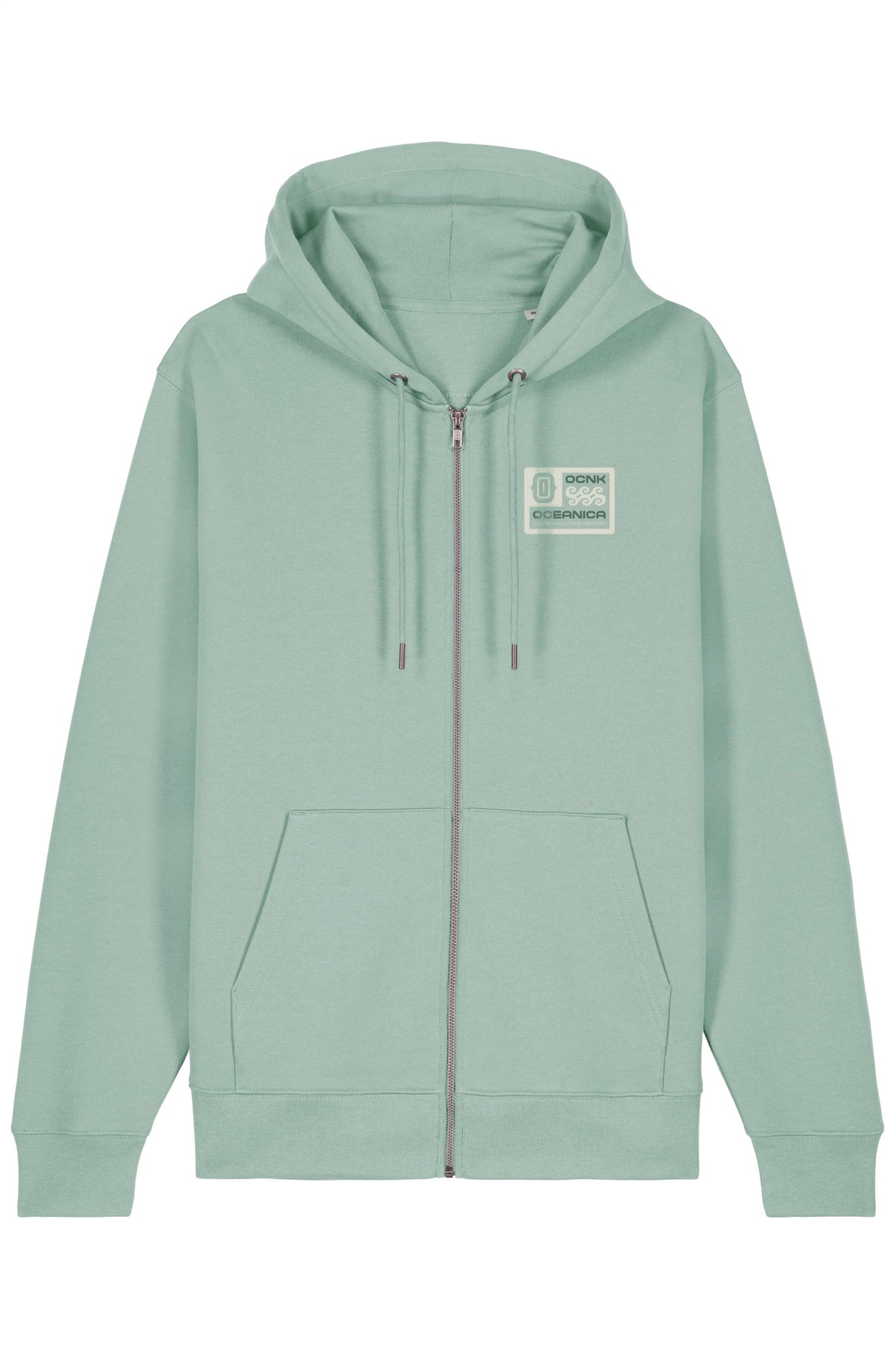 FRESH es nuestra sudadera con cremallera inspirada en la brisa limpia del mar: con capucha ajustable, bolsillos canguro, interior perchado extrasuave y corte recto unisex, lleva el logo de Oceanica impreso en la espalda y el escudo OCNK en el pecho. Fabricada con algodón orgánico y poliéster reciclado, es una prenda cómoda, versátil y con alma.