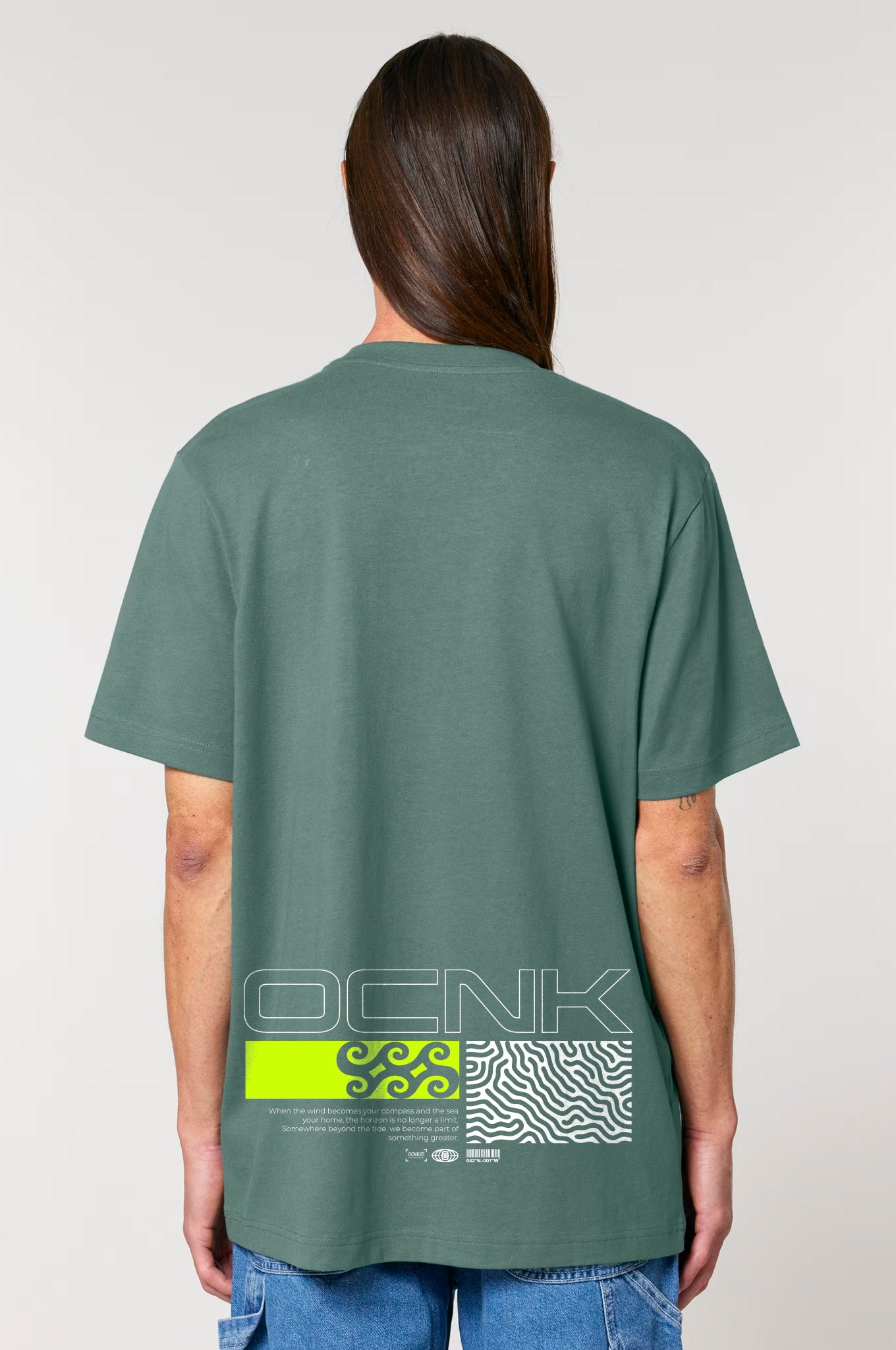 Green Bay - T-shirt, concebida para quienes buscan la ruta menos transitada, su Relaxed Fit asegura una total libertad de movimiento y comodidad. Su diseño minimalista y contemporáneo en la espalda utiliza contrastes de color vibrantes y gráficos abstractos, capturando la esencia de la exploración moderna.