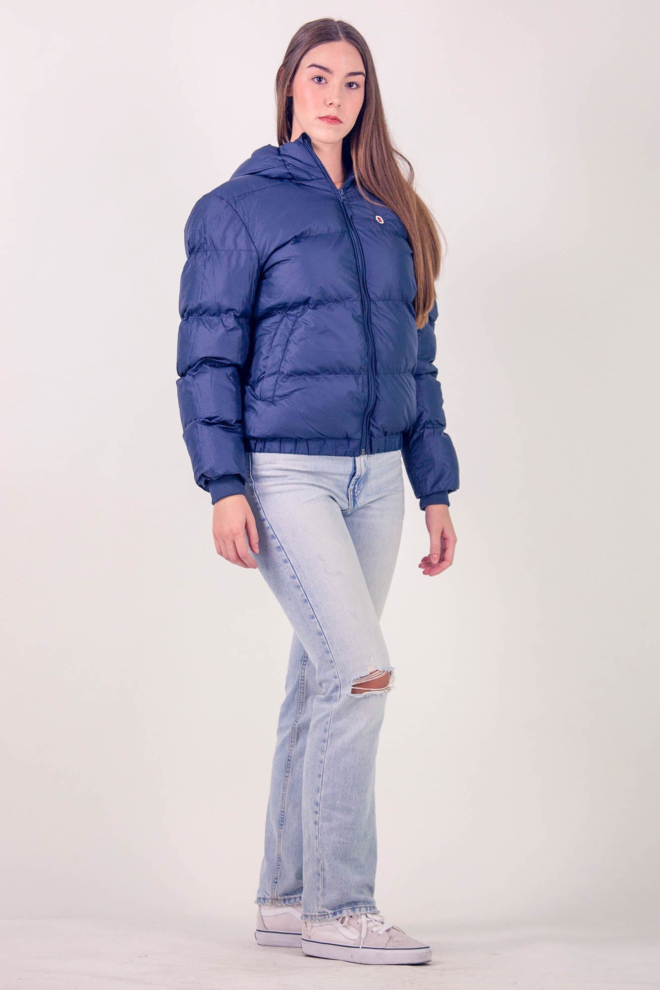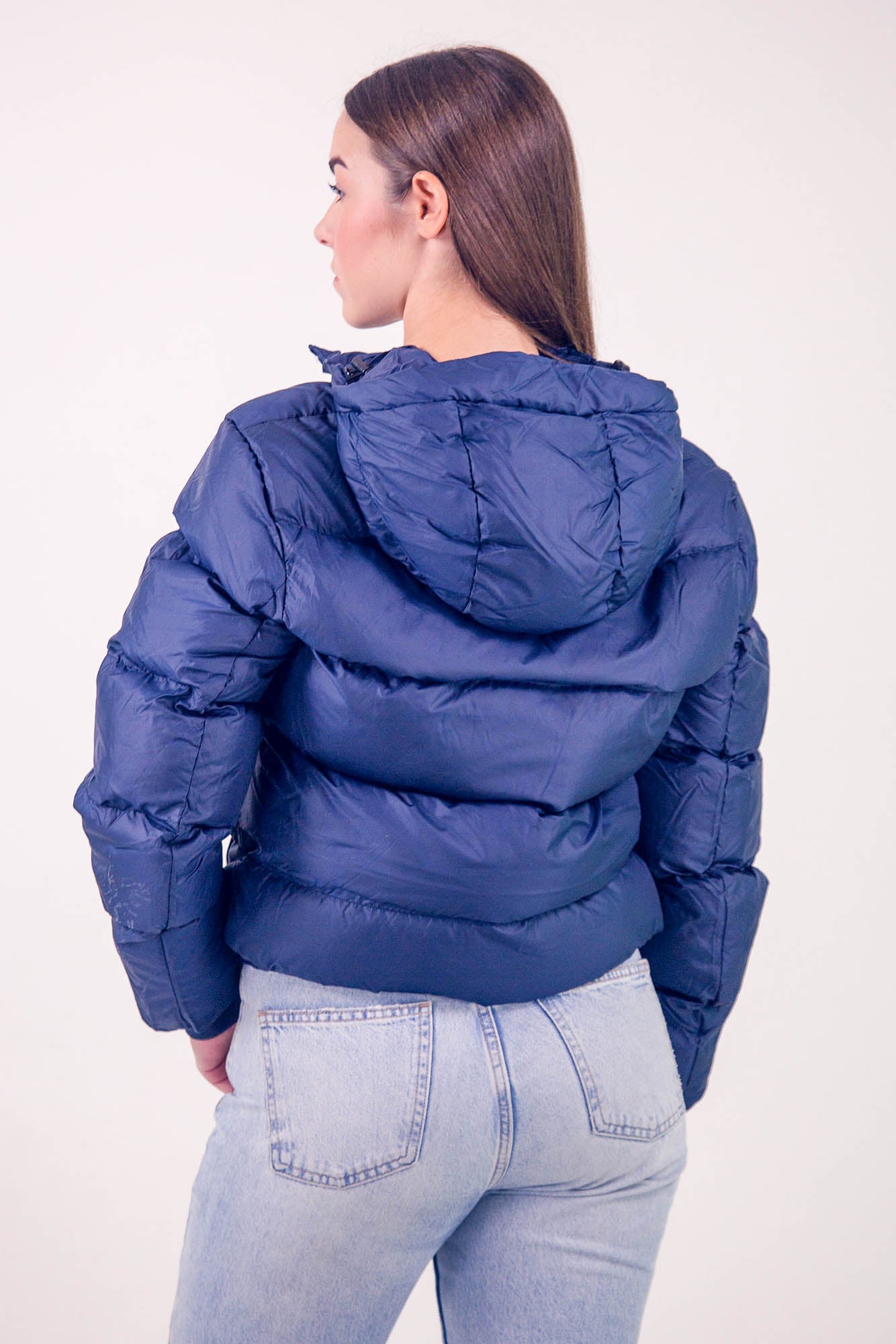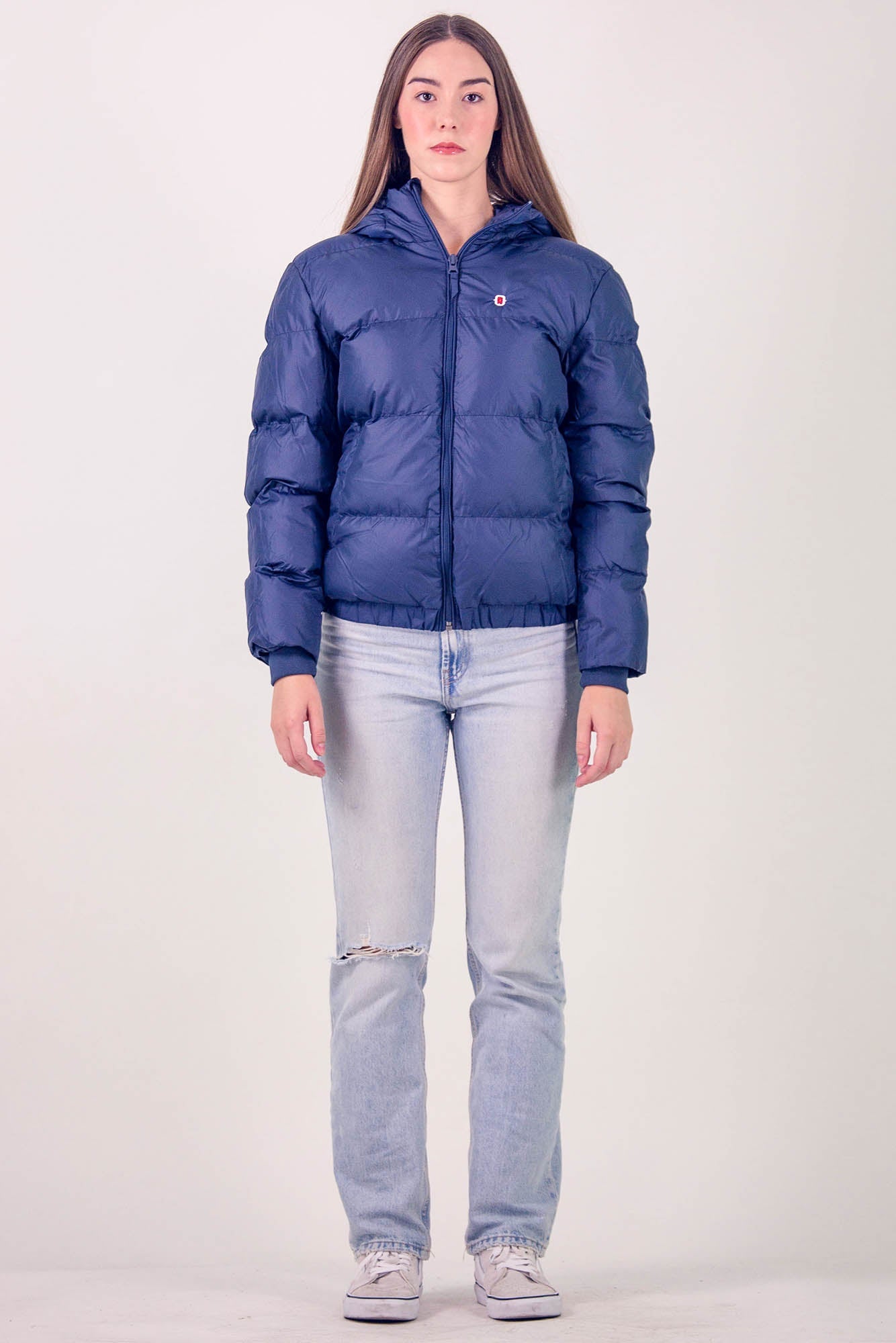 Capucha forrada con tope de plástico ajustable y cordón elástico en el interior