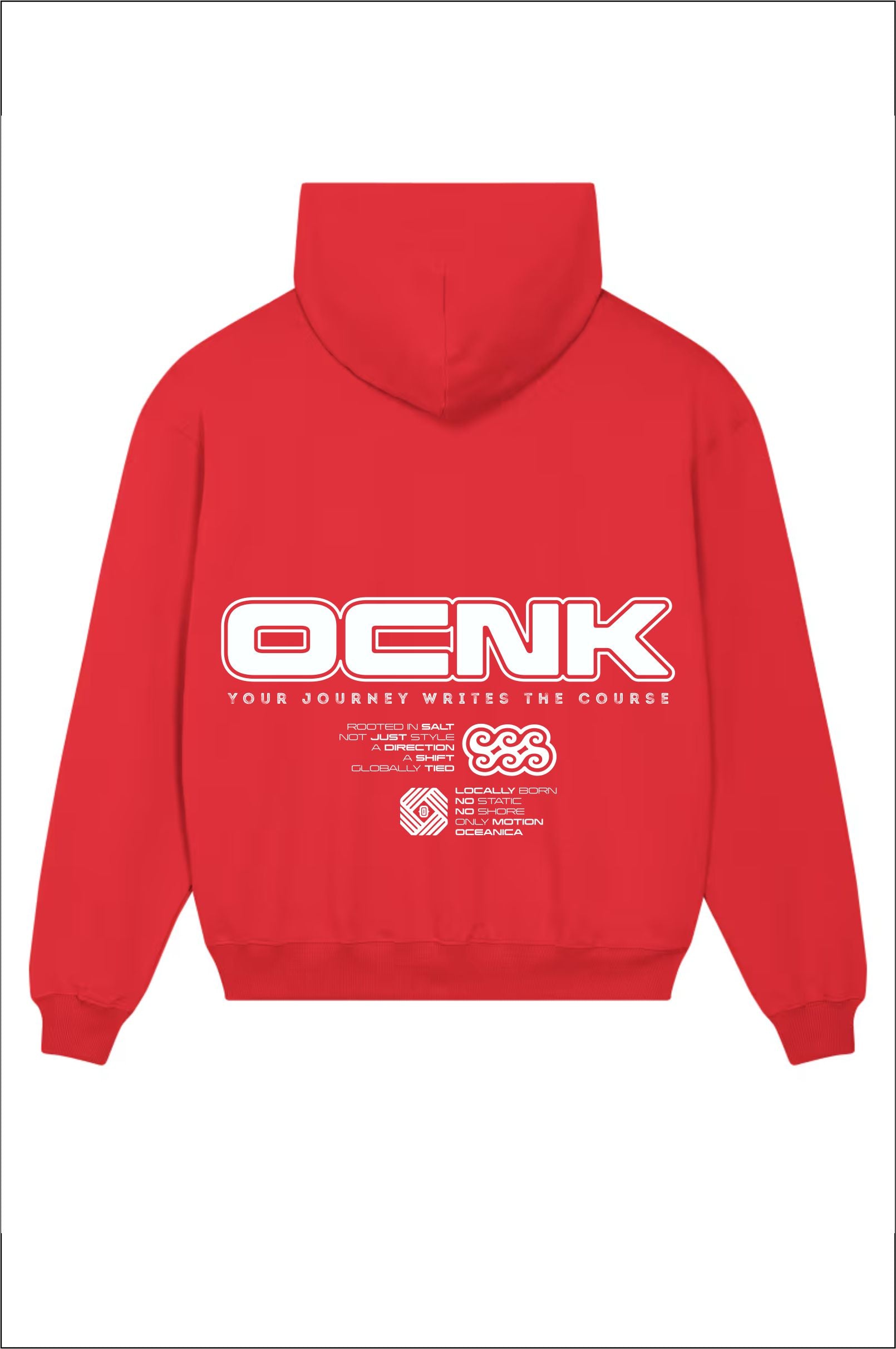 Detalles serigrafiados en pecho y espalda con nuestro emblema OCNK, el claim y los símbolos de la casa.